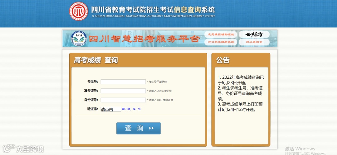 点击“高考成绩”,进入成绩查询界面。