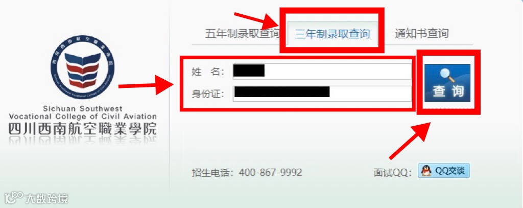 ■2.进入后点击“三年制录取查询”根据提示填写姓名及身份证号;填写正确后,点击“查询”;