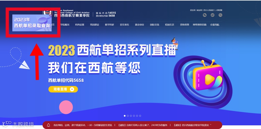 ■1.登录我院官网(http://www.xnhkxy.edu.cn),点击“2023年西航单招录取查询”飘窗进入查询登录主页;
