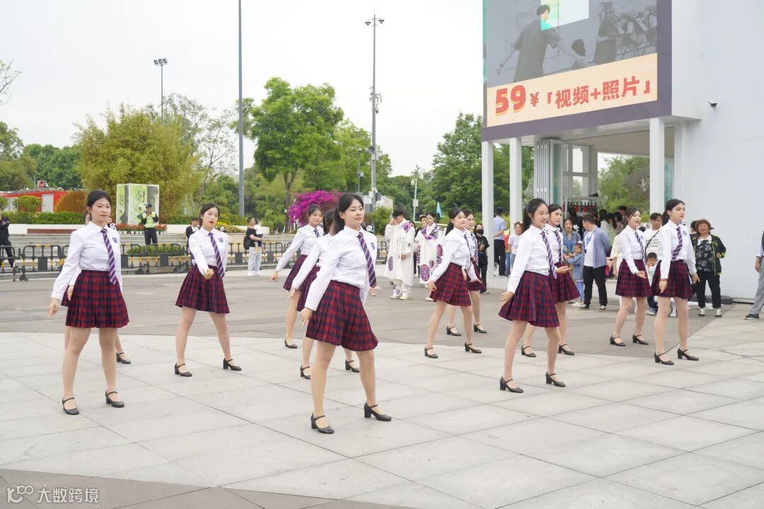 高难度动作游刃有余,飘逸的长裙随风舞动,嘴角的微笑感染着现场的每一个人,路过的游客们惊喜万分,纷纷停下脚步观看表演……