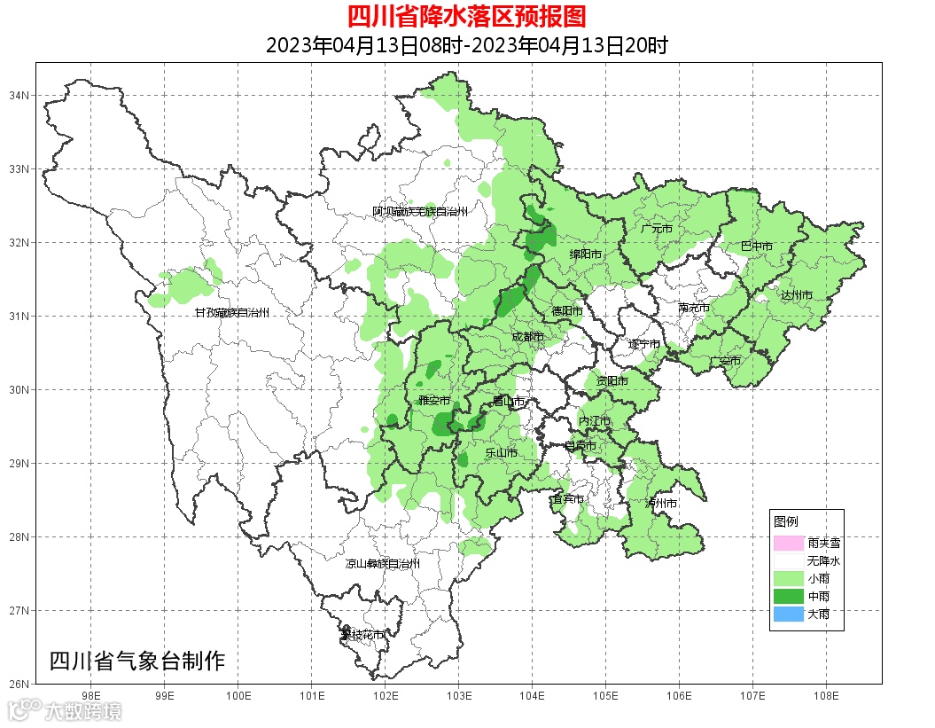 预计今晚到14日盆地大部阵雨,西南部、南部中雨,局部大雨转多云,川西高原和攀西地区大部晴,部分地方有分散阵雨(雪);