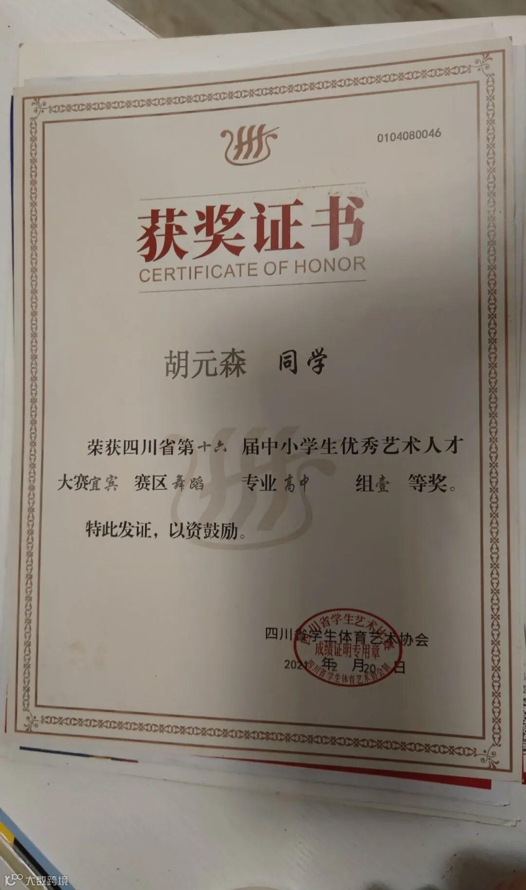 四川省第十六届艺术人才大赛舞蹈高中组一等奖;