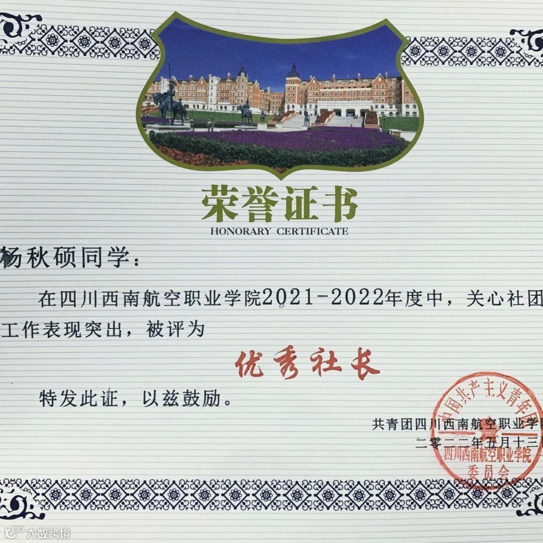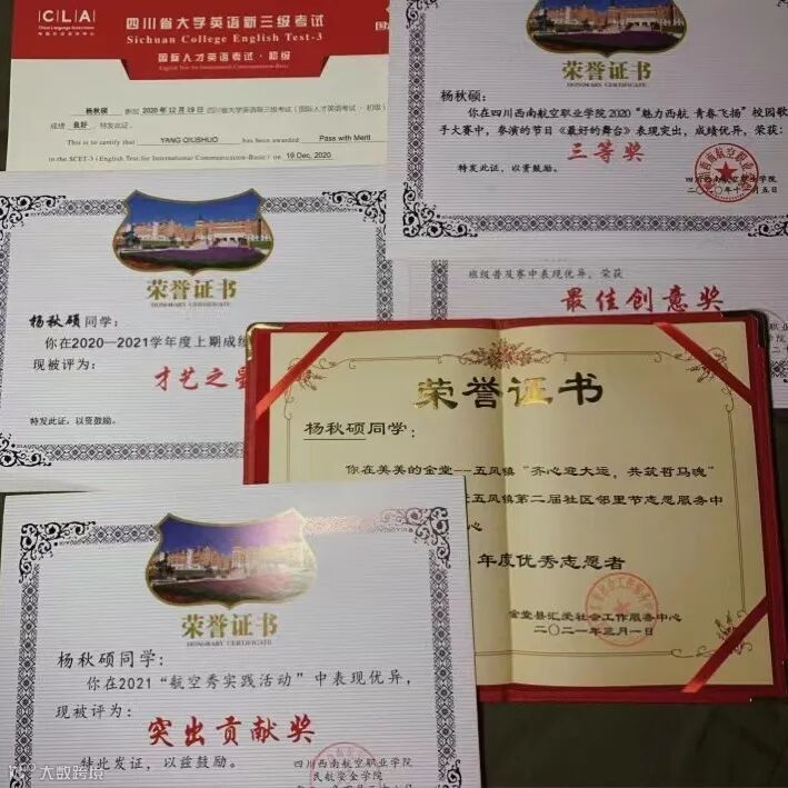 走在舞蹈的道路上,杨秋硕认识很多志同道合的好朋友,在他们身上获得了许多的帮助。她想感谢很多人,感谢大学生艺术团舞蹈队的小伙伴在排练时互相打气,指导老师的耐心指导,舍友、朋友们的台上台下的陪伴与帮忙......这些让她第一次完美编排60人齐舞、获得优秀社长、成为舞台常驻,在西航不断发现新的自己。