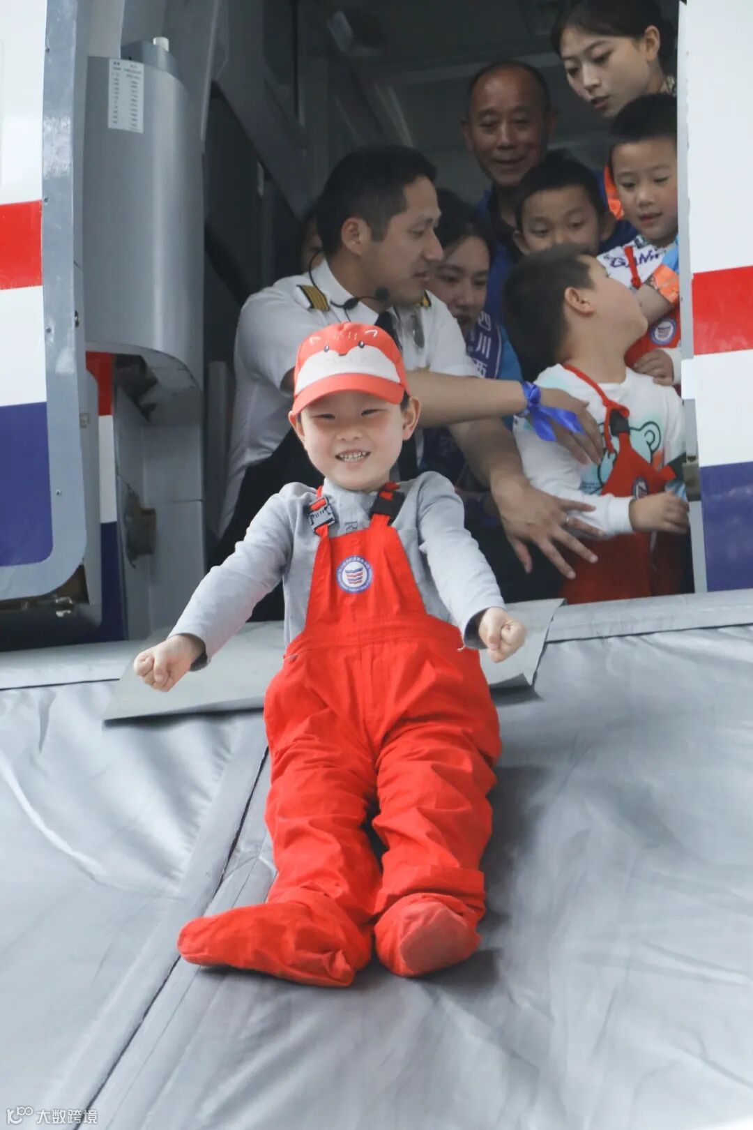 值得一提的是,在模拟乘坐飞机的过程中,孩子们还体验了陆地撤离的过程,在面对这个大型“滑梯”的时候,孩子们都兴奋不已,充满了欢声笑语。当豪豪妈妈看到他在一遍遍的滑行中,动作越来越标准时感动不已,她告诉志愿者:“前不久豪豪才从疾病中痊愈,陆地撤离体验让他勇敢尝试,变得更加坚强和乐观”。