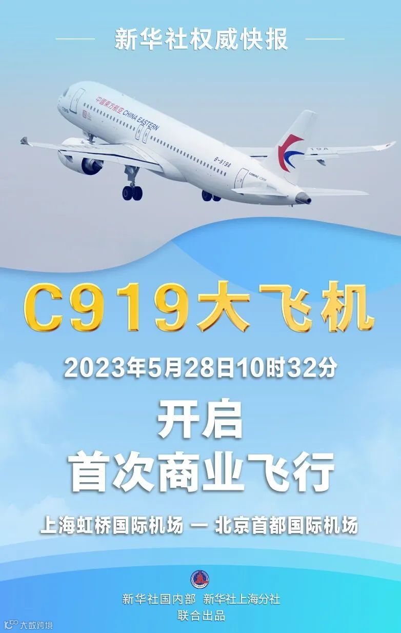 该航班标志着C919的“研发、制造、取证、投运”全面贯通