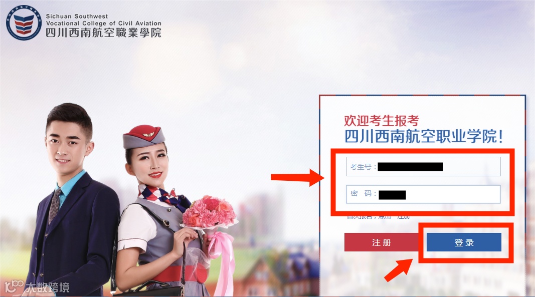 已通过四川省教育考试院报名的考生,点击“单招志愿专业填报”进入四川西南航空职业学院单招报名登录窗口;