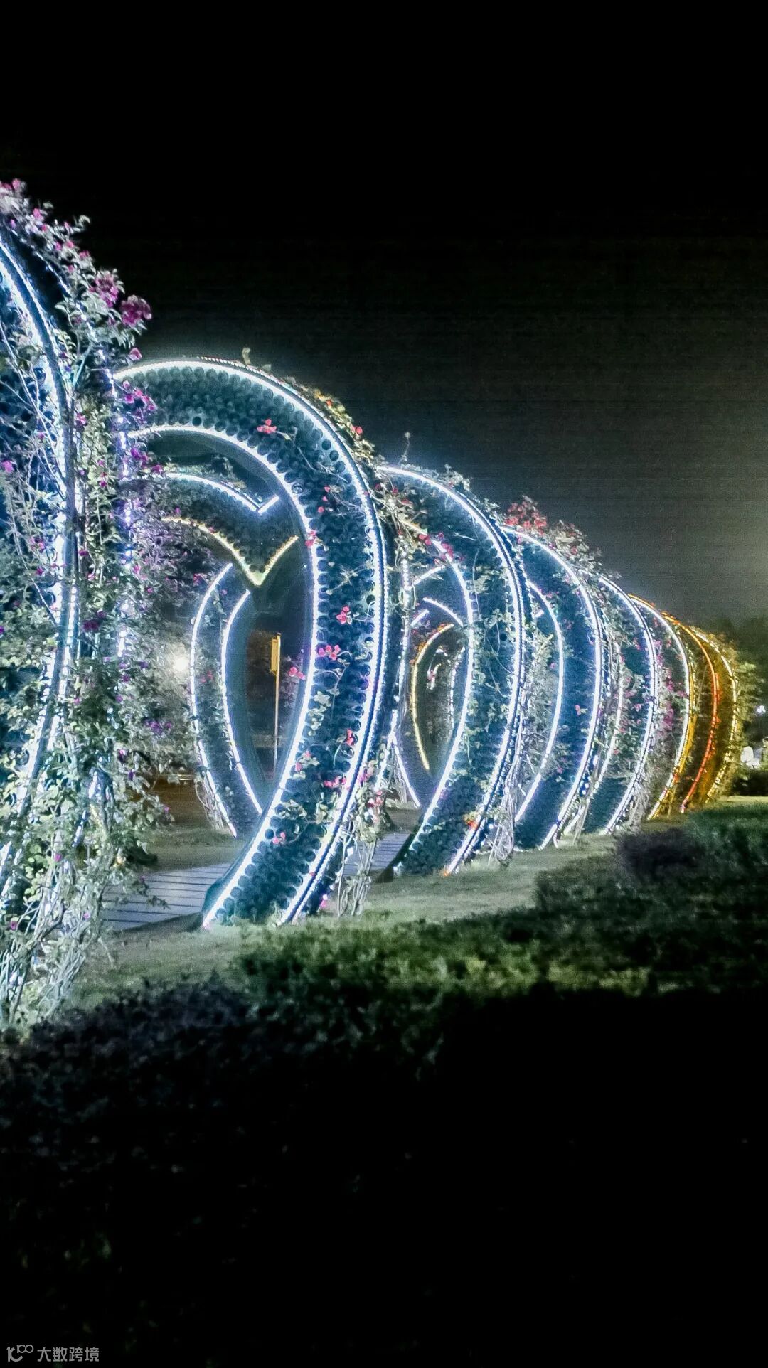 执勤上岗的路灯,宛若夜晚的守护者,照亮着一处处小径,组成一片发着光的海洋,漫步其间,沉浸一方静谧之中。
