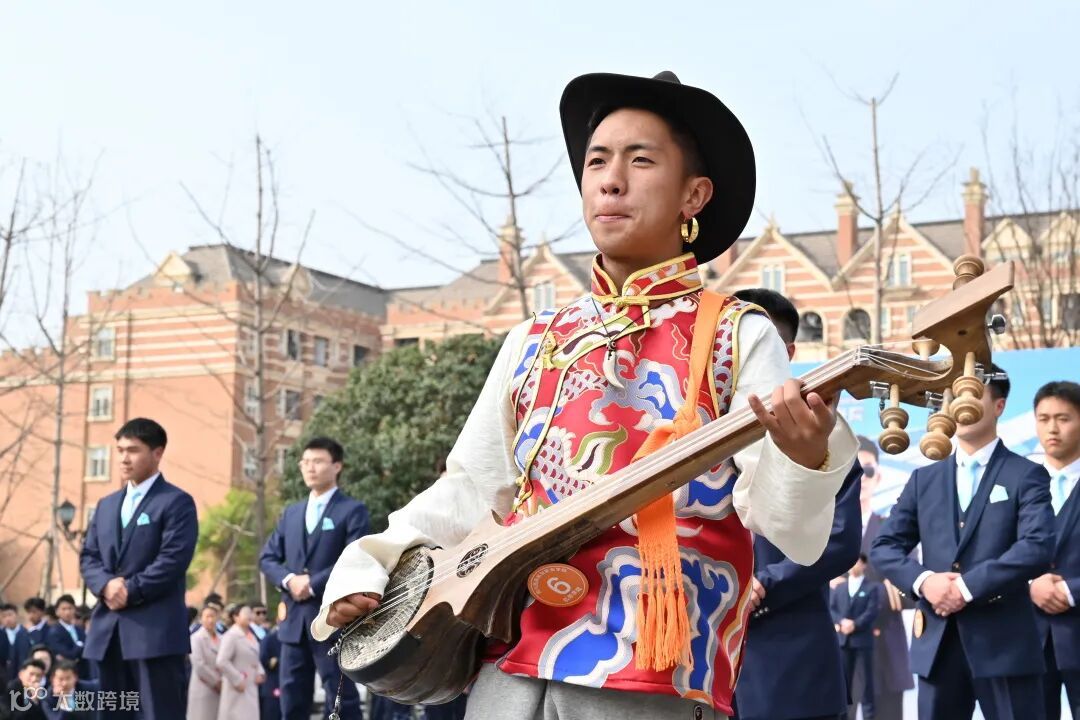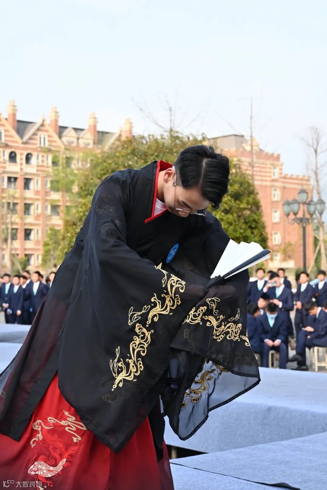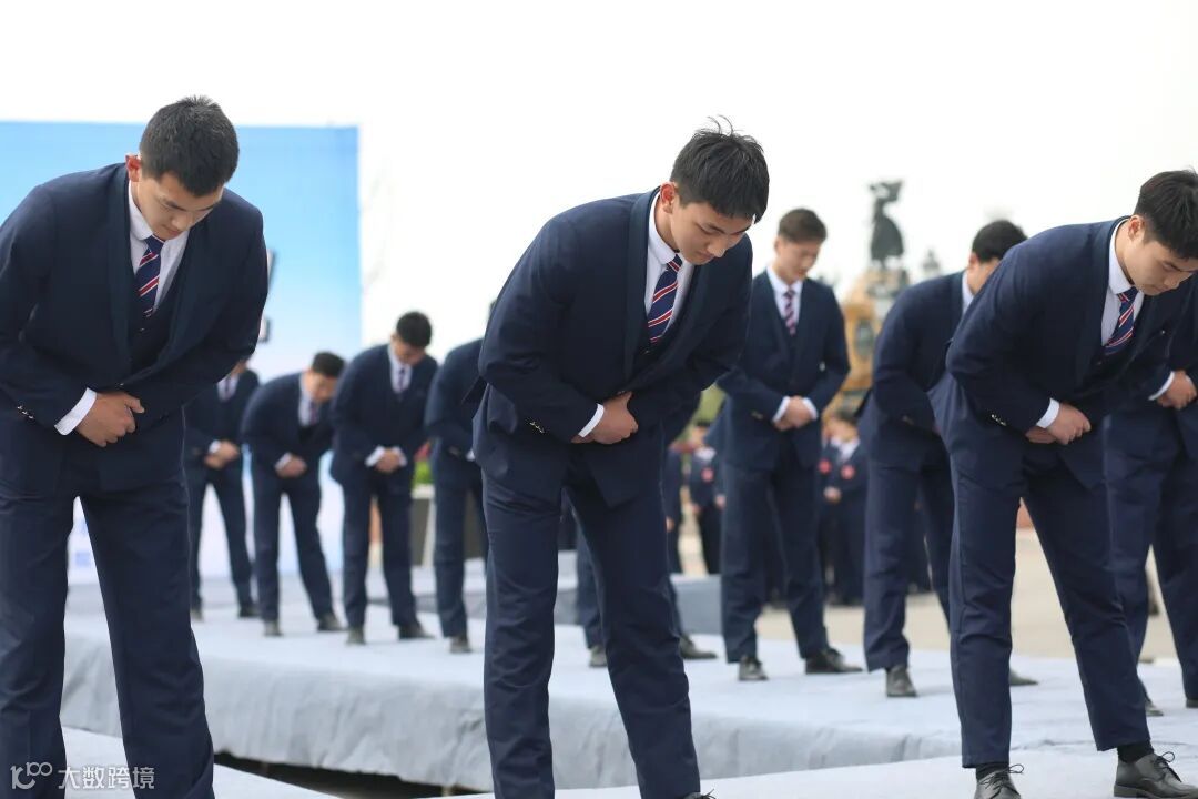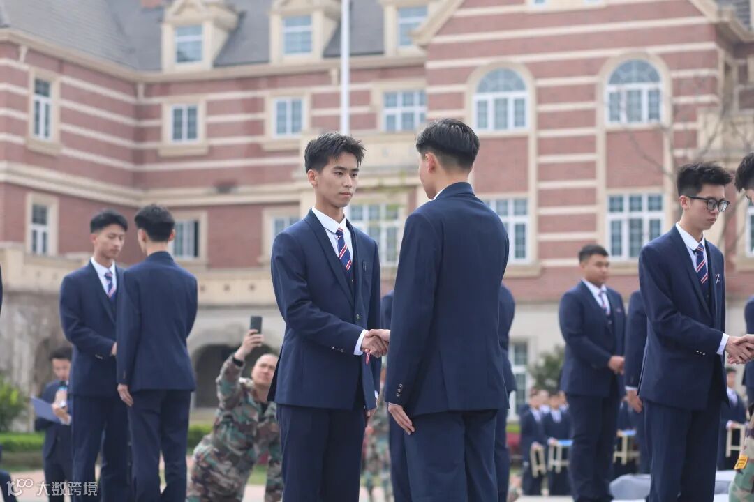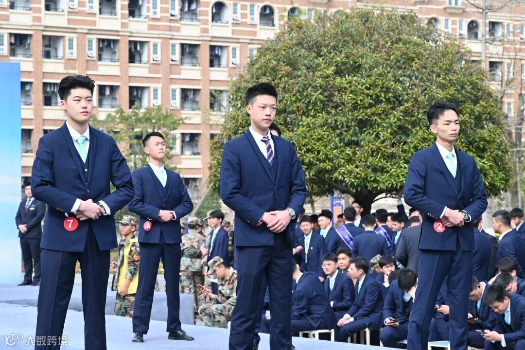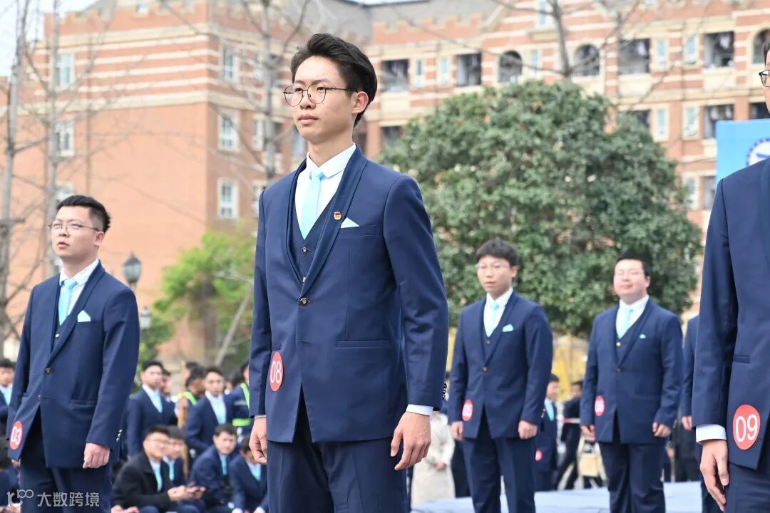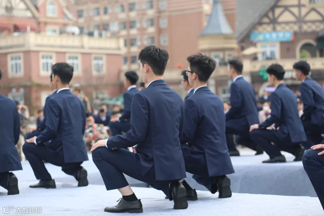 随着背景音乐的节奏,每个班级的队列整齐而一致,精准卡点。鞠躬的角度,抬手的高度,交换的速度,动作的完整度,既专业又具备美感。
