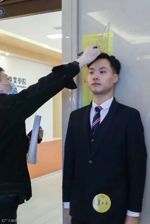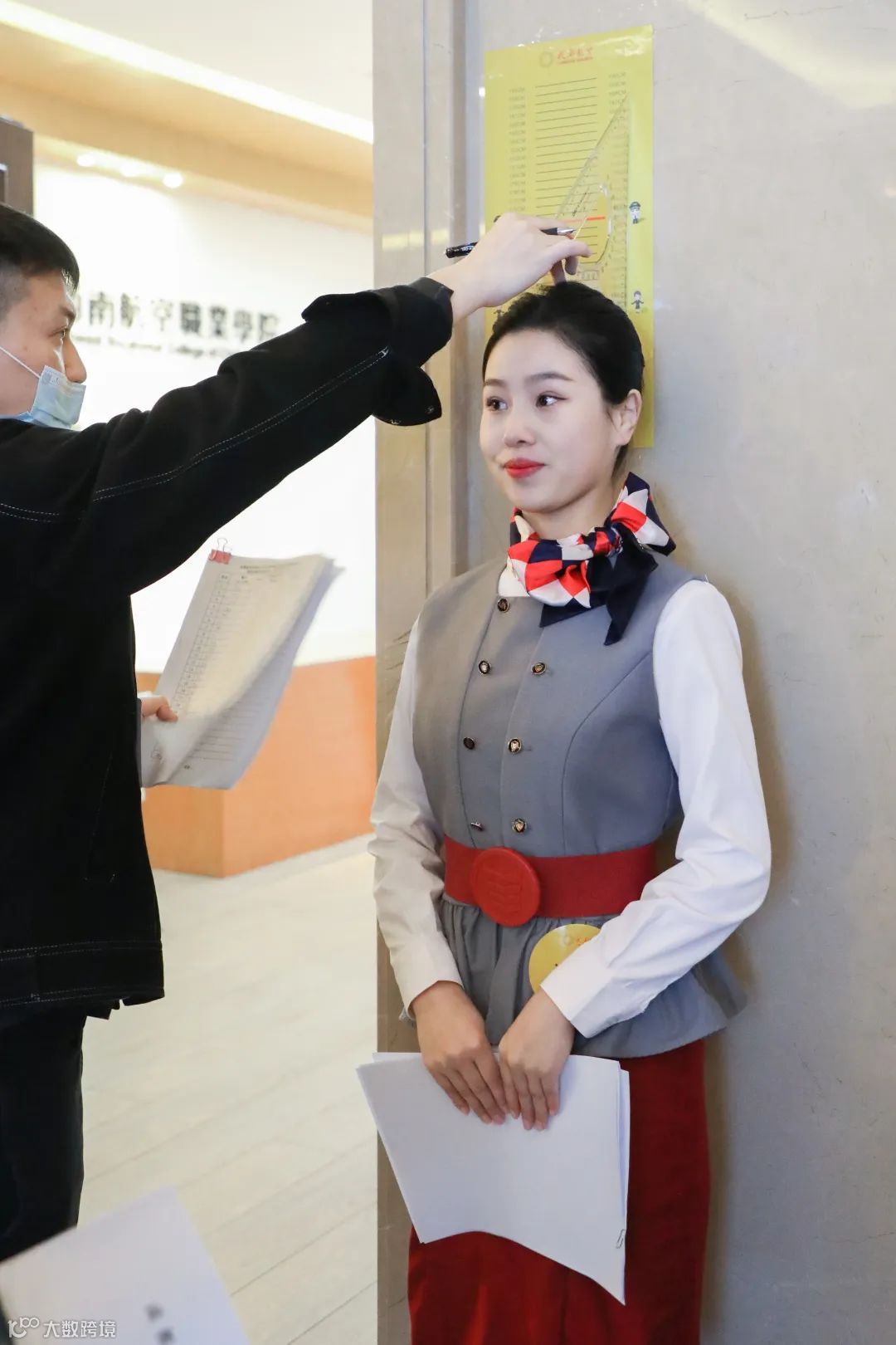 初试环节,经过身高体重测量后,同学们分组进入面试厅,并进行自我介绍、客舱广播词测试等,面试官则根据同学们的表现进行选择,满足条件的同学进入复试环节。复试环节主要考察同学们的职业能力,面试官现场随机抽问,对学子们的专业技能进行更加深入的了解。