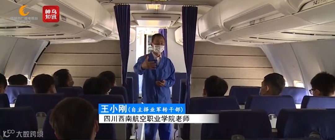 在镜头的注视下,王小刚老师正在给飞机机电设备维修专业学生教授实操课程,他借助波音737-300客机的真机,将复杂抽象的内部构造以实物形式活灵活现展现出来,让兴趣成为触发点,使同学们对专业、对机械、对职业有更好的认识和理解。
