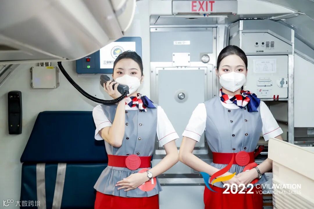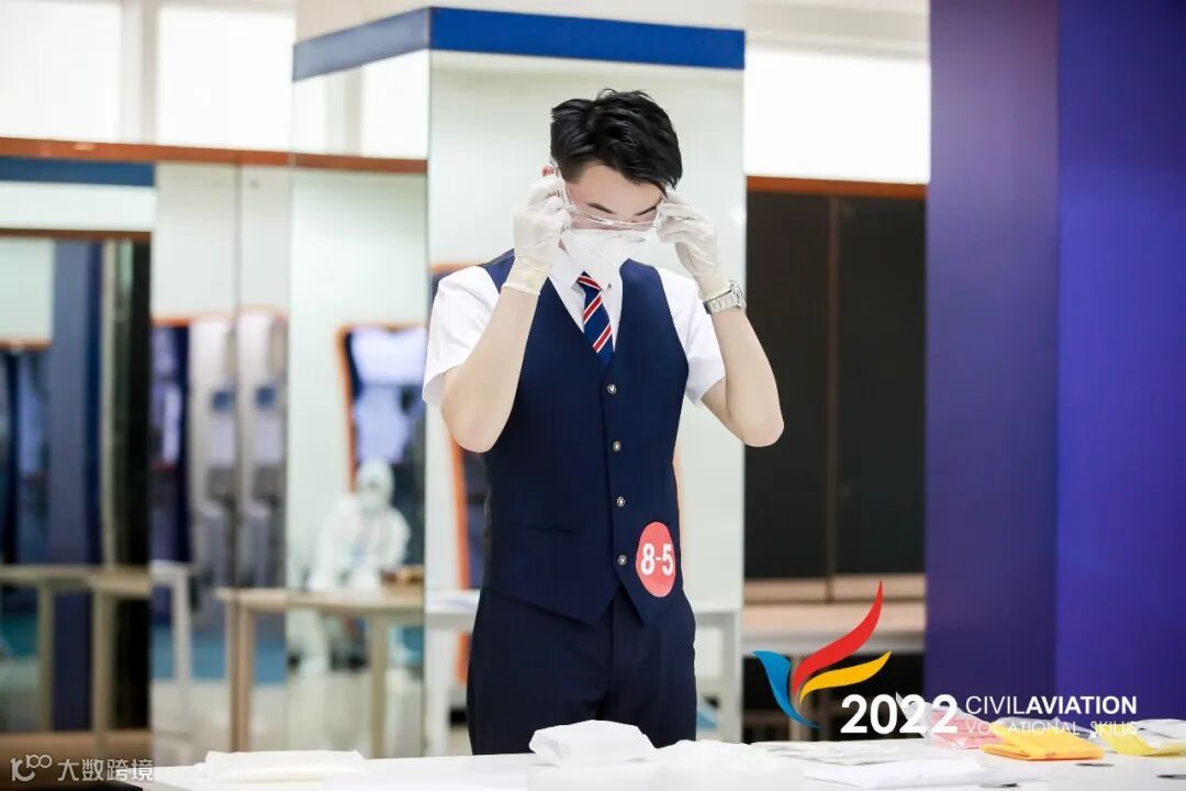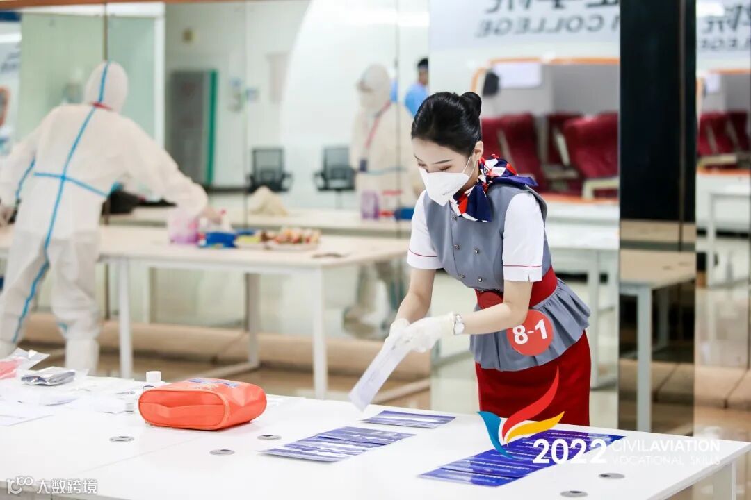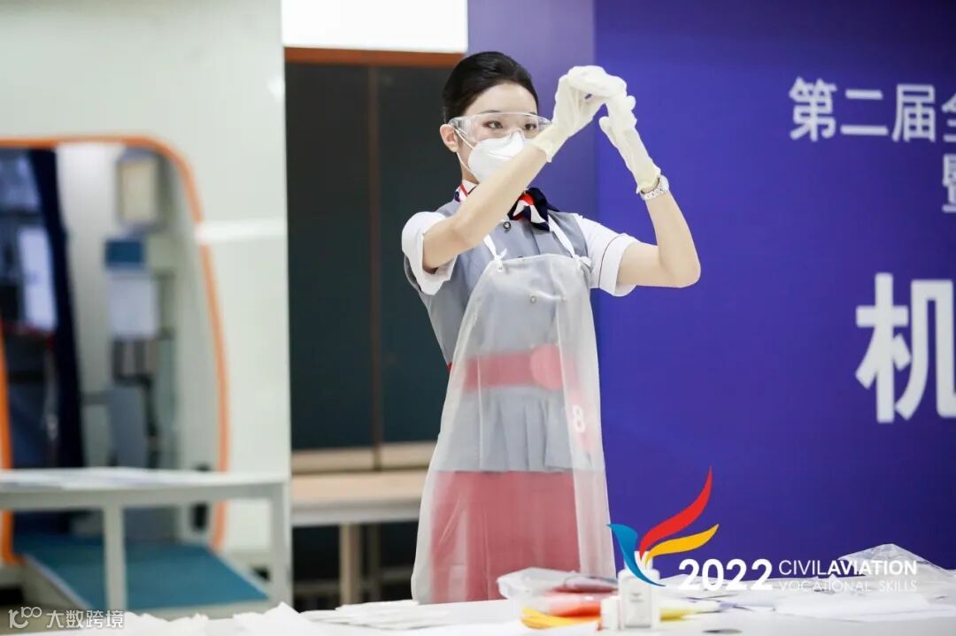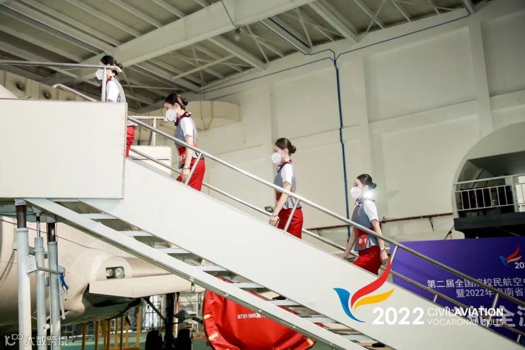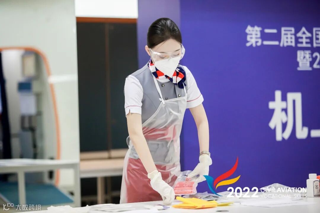 本次大赛,以“强技能,筑安全,塑文化,展风采”为主题,以教育部“1+X 民航空中服务职业技能等级标准”为考核内容,设置了理论知识考核、综合能力考核及模拟舱安全服务三部分的竞赛模块,重点考察客舱安全与服务技能的综合运用情况。