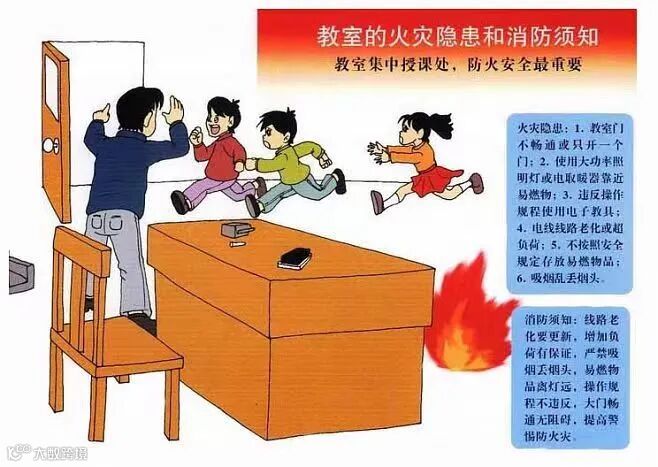 4.爱护学校的消防器材,比如走廊上的灭火器、疏散指示标志等,确保其完整好用。