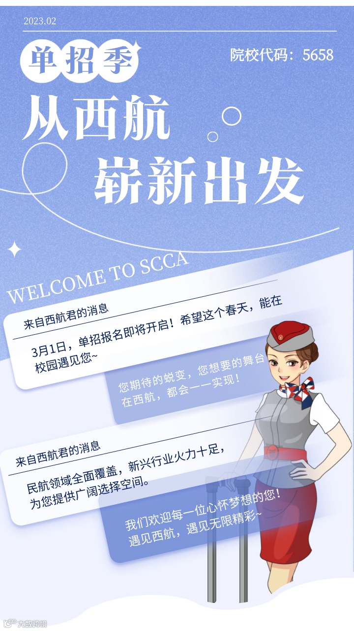 四川西南航空职业学院是经四川省人民政府批准,国家教育部备案,纳入国家招生计划的全日制航空类高职院校,在校生约15000人,由国家示范性职教集团一一泛美教育集团创办,专注航空教育30年,秉承“纵向贯通、横向融通”的集团化办学思路,以“公益教育、精品教育”为宗旨,创建了产教深度融合的现代航空教育体系,立足民航建立了强大的双师型师资队伍、建设了稳定的实训实习基地,开拓了广阔的就业渠道,得到了广大学生、家长以及民航行业的高度认可。