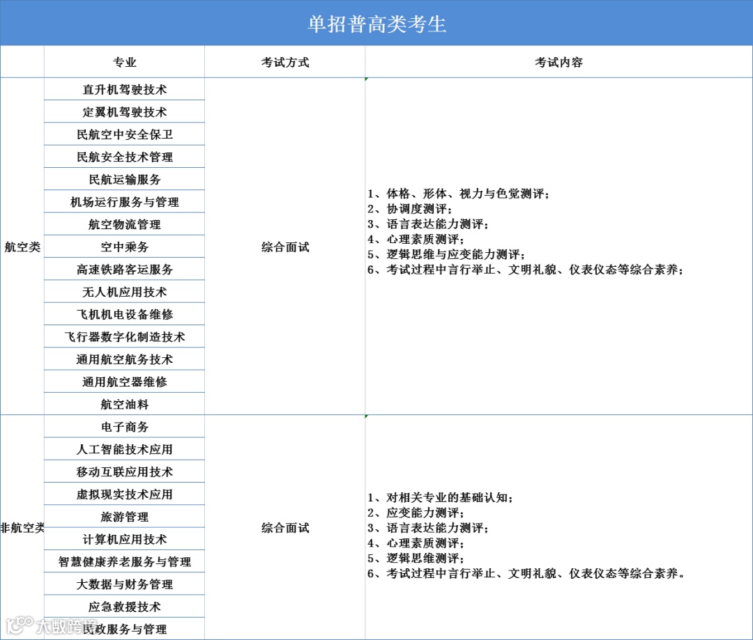 学院专业设置覆盖航空全领域,设有空中乘务、民航空中安全保卫、民航安全技术管理、飞机机电设备维修、直升机驾驶技术、定翼机驾驶技术、无人机应用技术等民航专业,坚持与民航行业标准无缝对接。同时,紧跟科技与时代的进步,关注具有发展潜力的新兴领域,重点发展新时代下社会经济发展急需的前景专业,形成了人工智能、移动互联、虚拟现实技术应用、智慧康养、新电商等专业集群,向着特色鲜明、多学科综合性高校发展。