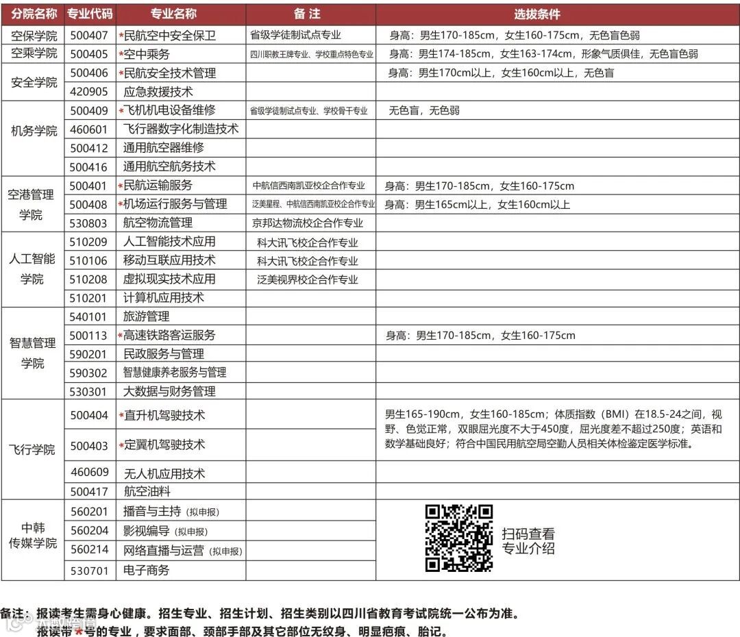 (注:具体招生专业,以四川教育考试院公布为准)