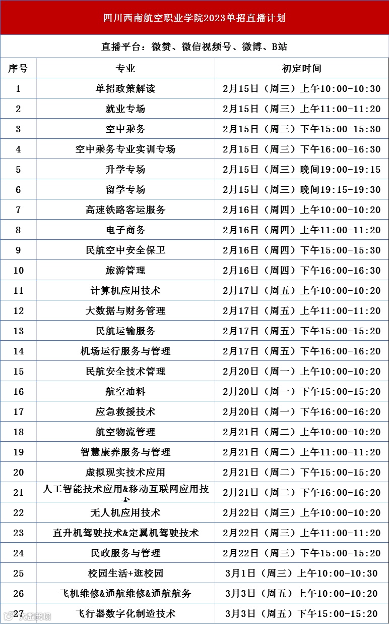单招直播详细时间安排