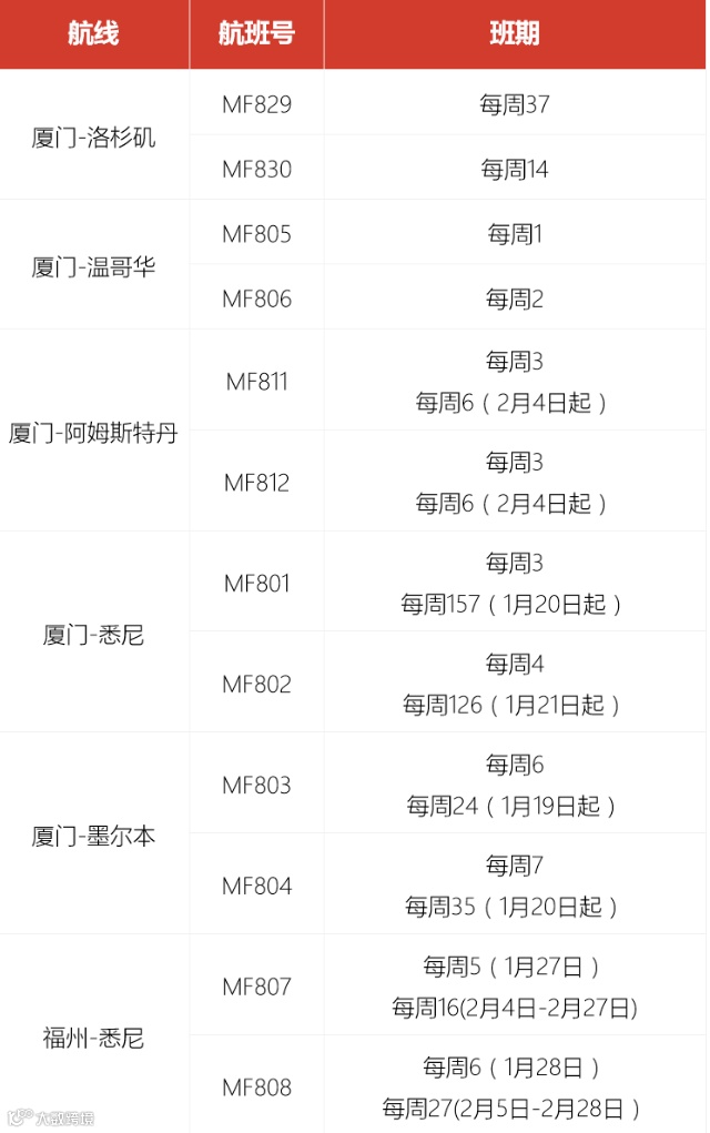 近期,厦航恢复厦门-胡志明航线、福州-悉尼航线,还计划恢复福州-曼谷航线。同时,厦航增飞多条东南亚热门目的地航线和洲际航线。以下是最新版的厦航1-2月国际及地区航班计划: