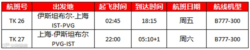从2023年2月15日(含)起,伊斯坦布尔到上海的往返航班增班至每周2班,具体航班时刻信息如下: