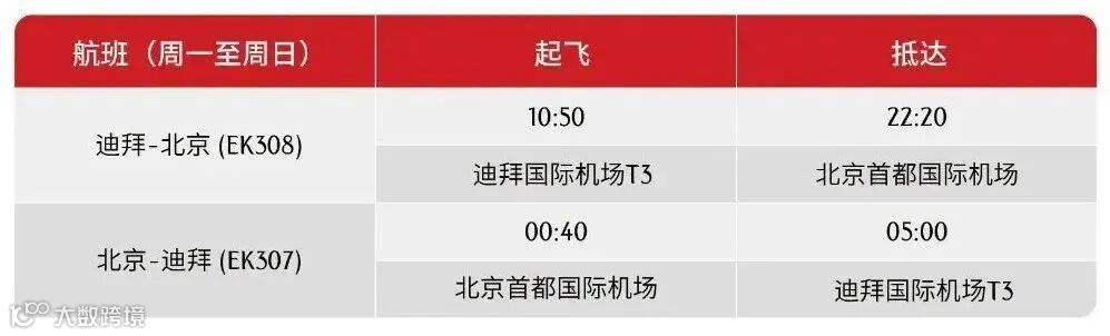 3月15日起,阿联酋航空复航北京,这一直航服务将每日运营一班,由三舱版波音777-300ER客机执飞。阿联酋航空迪拜往返北京航班时刻如下: