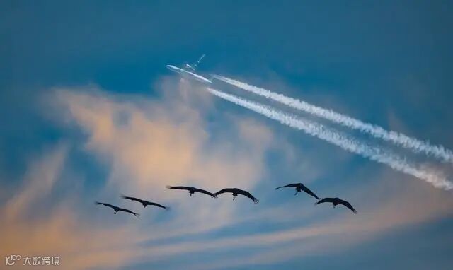 飞机在空中留下的白白长尾,其实是凝结的水滴,因此也称作「凝结尾迹」。飞机引擎会产生并排出水蒸气,高温水蒸气碰到温度较低的高空空气之时,就会在天上留下白色的线条。那和你在冷天时会呼出雾气有些相似。