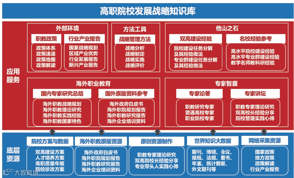《高职院校发展战略知识库》通过汇聚国内外职教发展规划、发展路径、国家建设要求及优秀办学经验等知识资源,打造职业教育创新发展智库平台,成果示范与经验交流平台,为职业院校提供办学决策、院校治理、专业(群)规划与建设、职业教育研究相关的知识与情报服务。