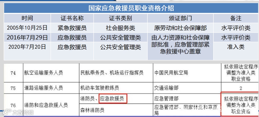 中国应急管理部紧急救援促进中心应急救援员、AHA-国际急救员、红十字救护员、消防设施操作员、高级民航安全检查员。
