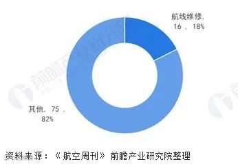 ⬆2021年中国民航飞机维修市场细分领域规模及占比(单位:亿美元,%)
