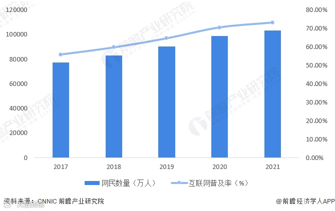 ⬆2017-2021中国网民规模和互联网普及率