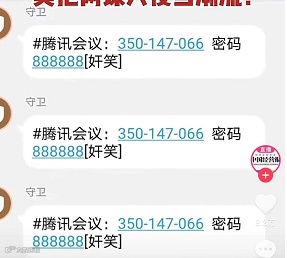 一位“网课爆破”的参与者表示∶“除了一些没密码随机进入的线上网课,其他的大都由学生提供的该堂网课的会议号和密码。”