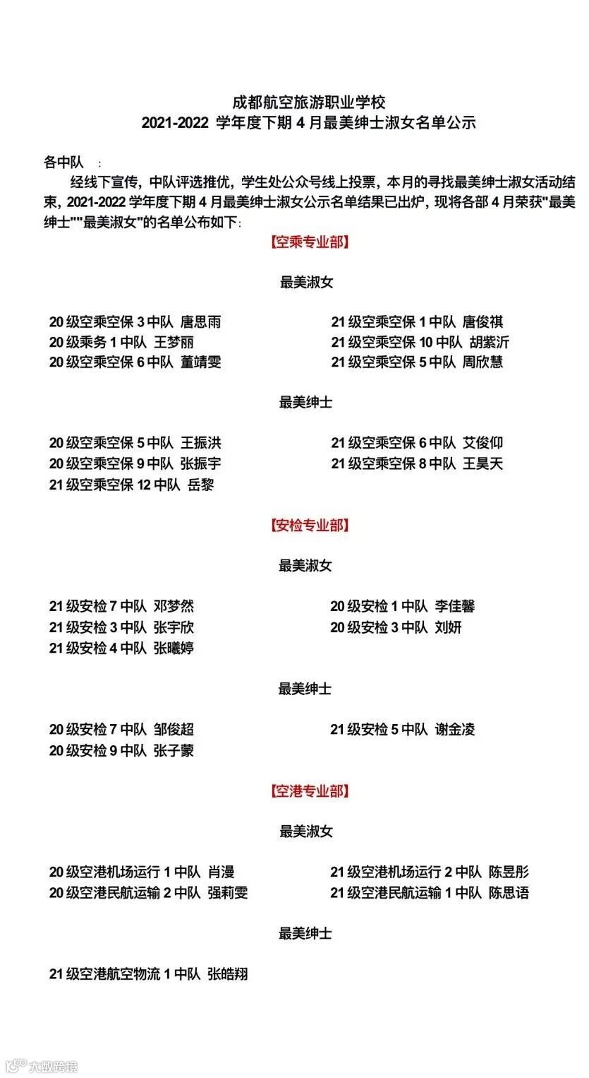 速看!2021-2022学年度下期4月最美绅士淑女名单公示