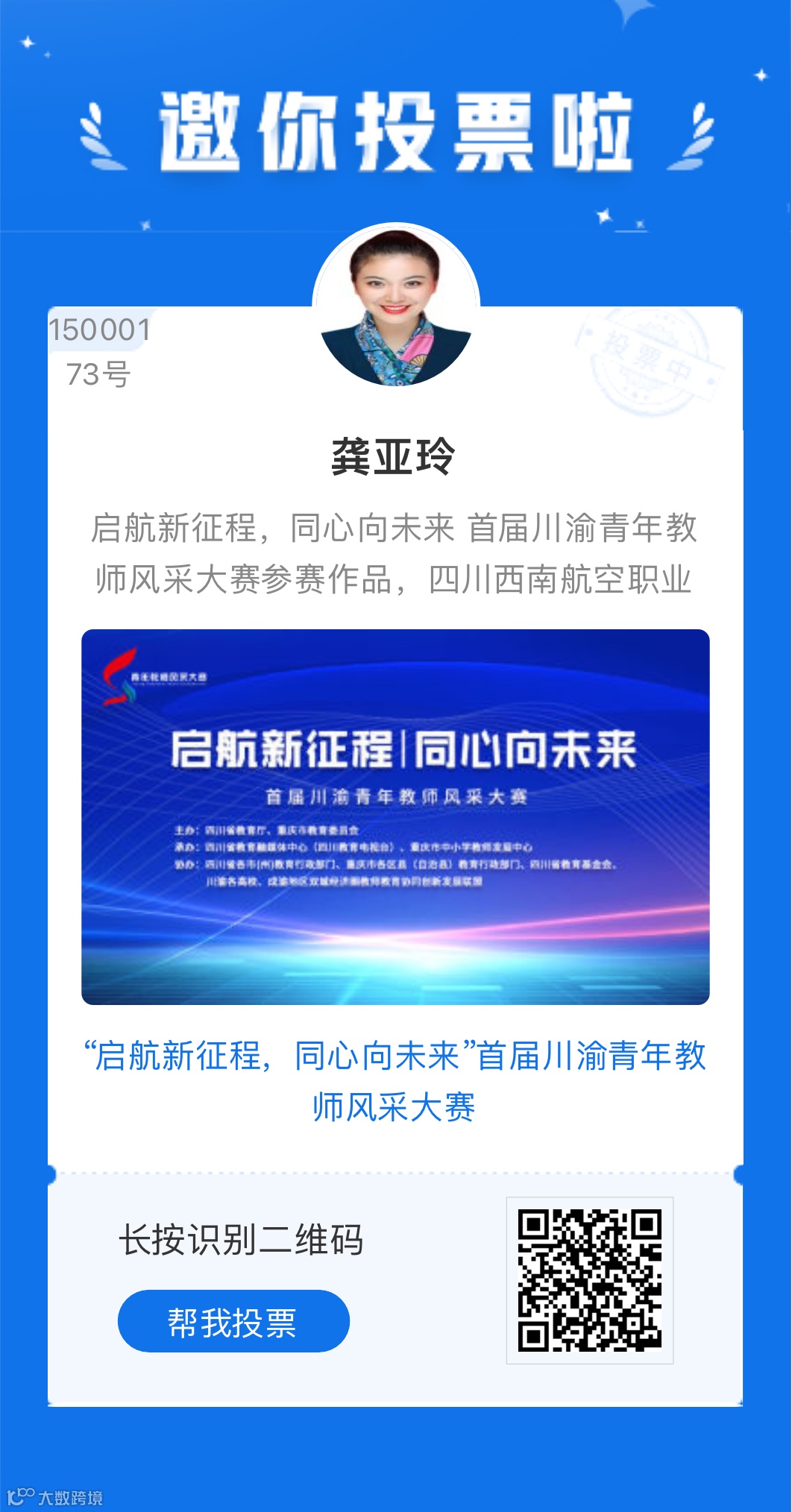 ●投票规则:每个微信号每天可投5次,每天可投同一选手5票