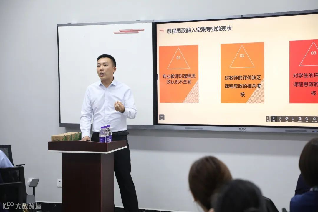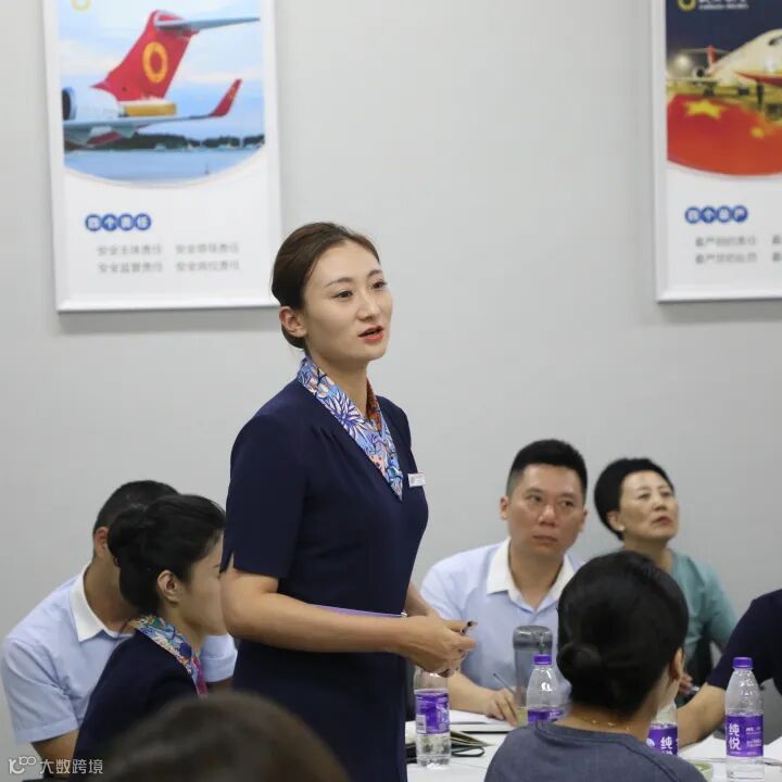 培训最后,围绕课程思政视域下空乘专业培养模式的创新,职业教育新形式、新业态下空乘专业教师必备的素质,民航规章与空乘专业教学的融入等主题,各小组代表纷纷上台说课,空乘教师们从整体课题设计、科研实施过程、具体推进措施等一一进行了分析,并对“科研需要”“研究思路”“科研目标的确定”“方案选择与制定”等具体内容进行了详细讲解。