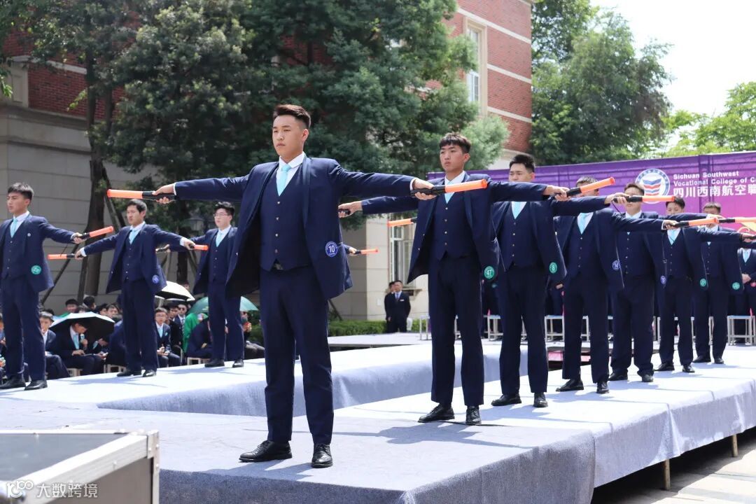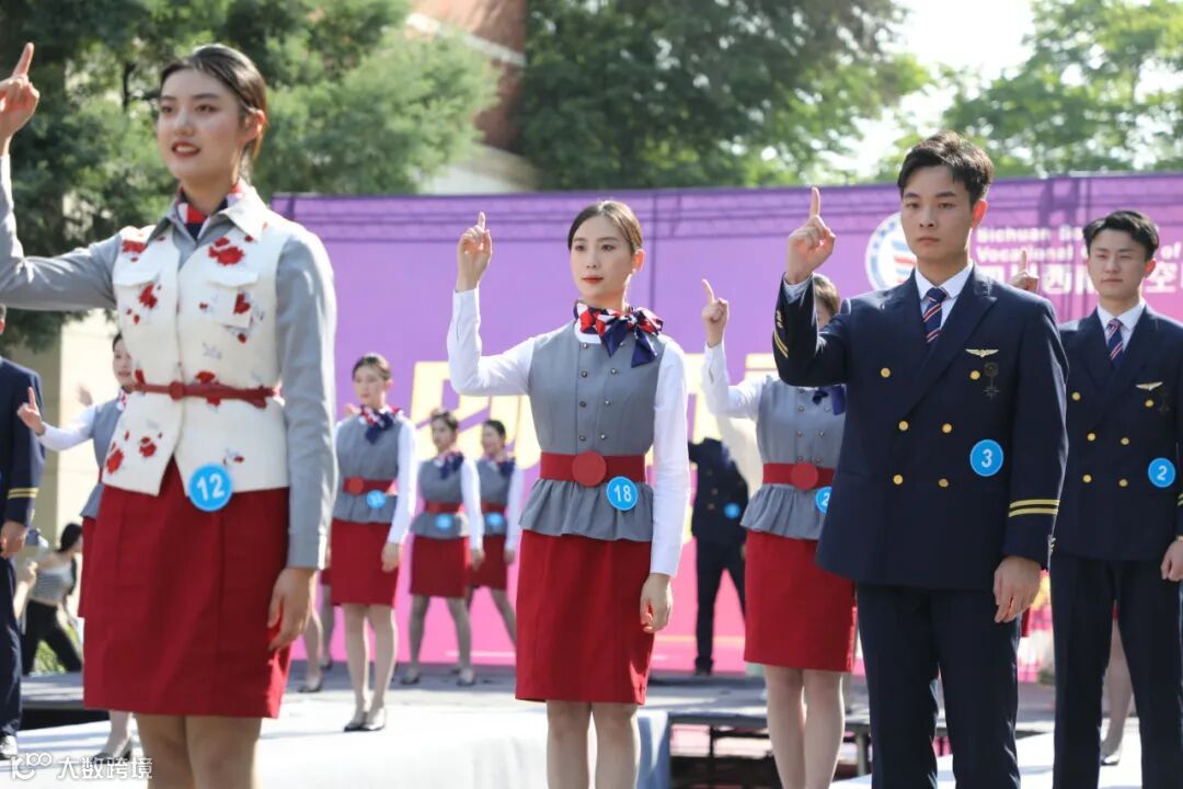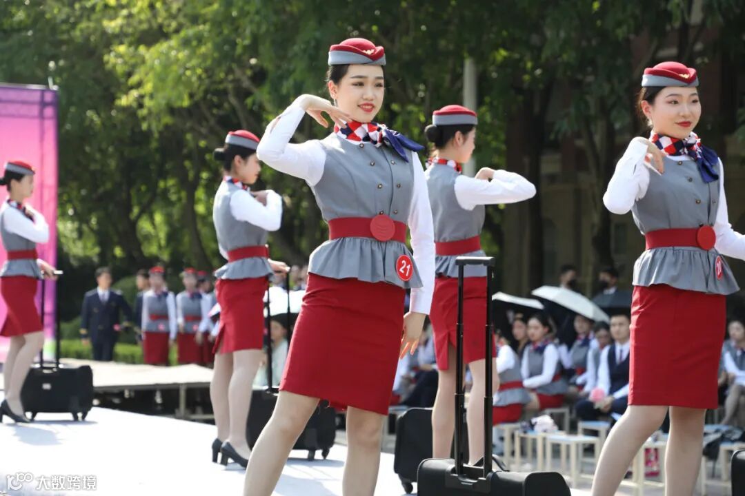 将民航技能与职业礼仪相结合,或是空乘、空保、国际学院的客舱手势,安全学院的人身检查,亦或是空港学院的服务模拟、机务学院的机坪作业演示、五专学院的综合展示,同学们以专业、干练、自信的姿态完美再现民航工作日常,淋漓尽致地彰显了“高度职业化的民航员工”的极致风采。