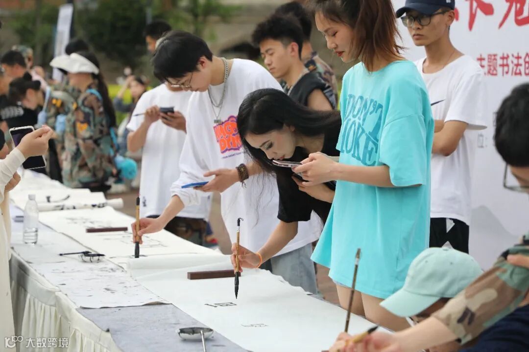 看着长卷上刚劲有力的字句,不少同学们也好奇地虚心请教,大胆尝试,即使笔法功力略显稚嫩,但在一笔一划中激发了对书法的兴趣,体会到书法带来的乐趣与魅力。
