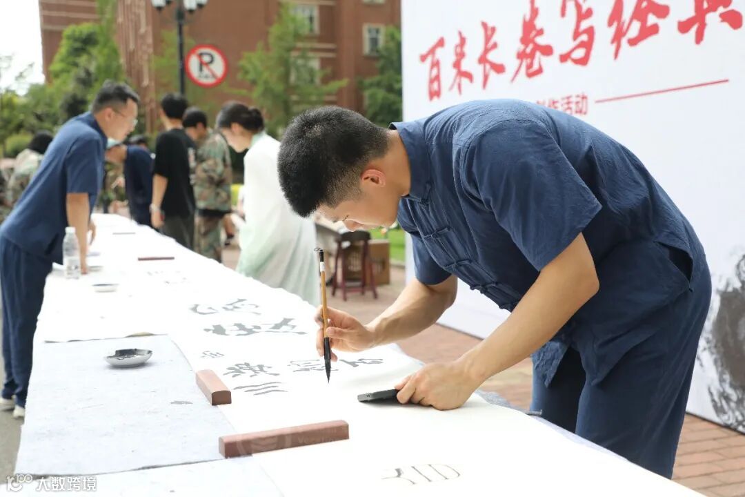 书法展演,体味经典;百米长卷,笔墨飘香。在现场,“书法大将”们沉心静气、专心致志地落下每一笔,横竖撇捺,下笔有力,收放自如,各具特色的风格字体,呈现出别具一格的美感。
