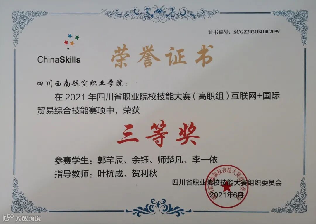 ⬆航空物流管理专业连续两年在四川省职业院校技能大赛(高职组)互联网+国际贸易综合技能赛项中收获团体与个人奖项若干