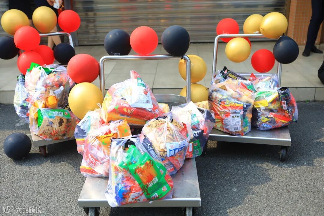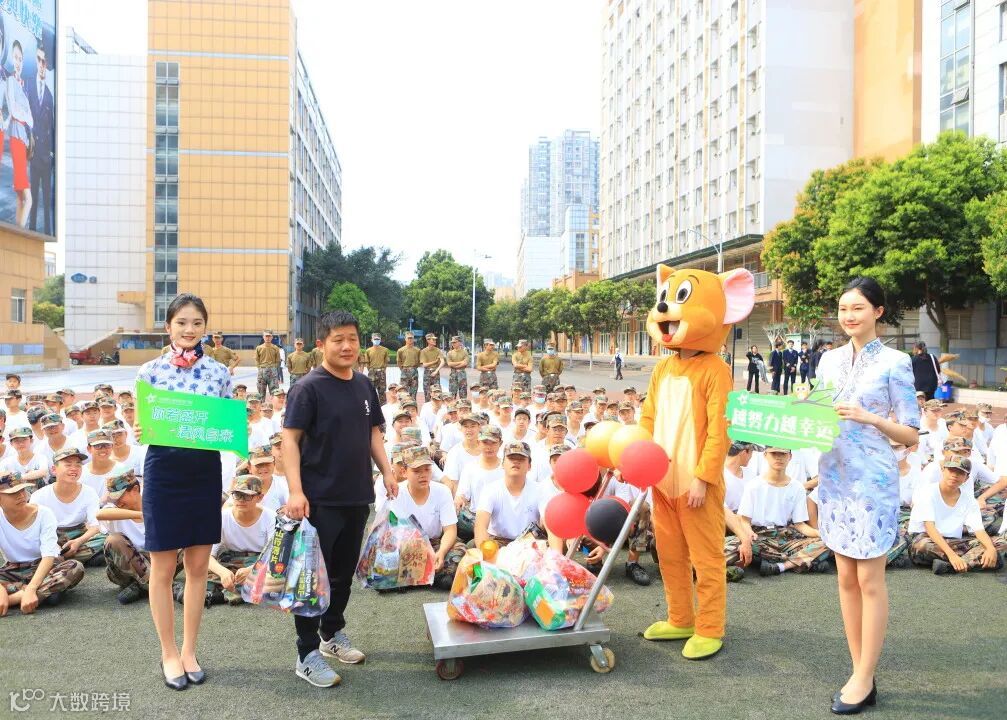 校领导、教官们给同学们发零食