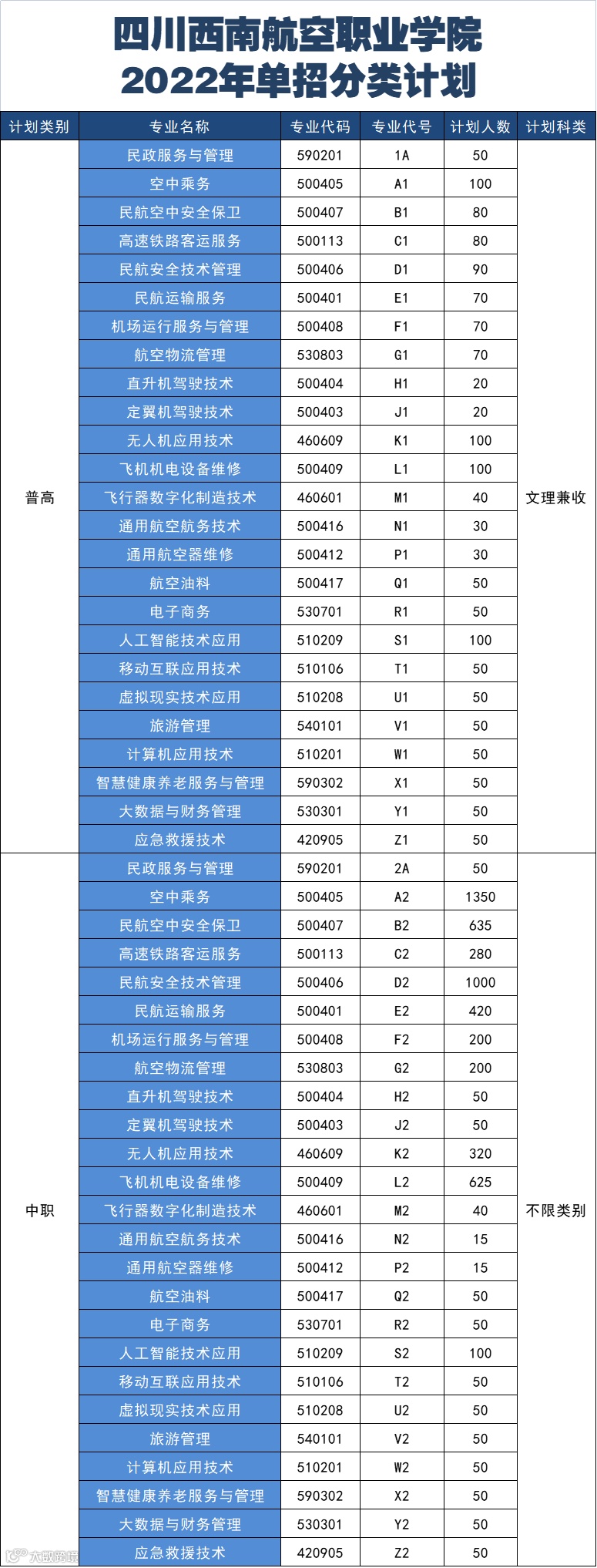 西航单招专业计划及详细介绍
