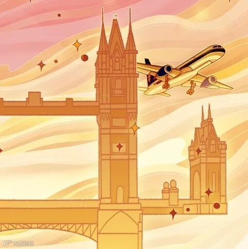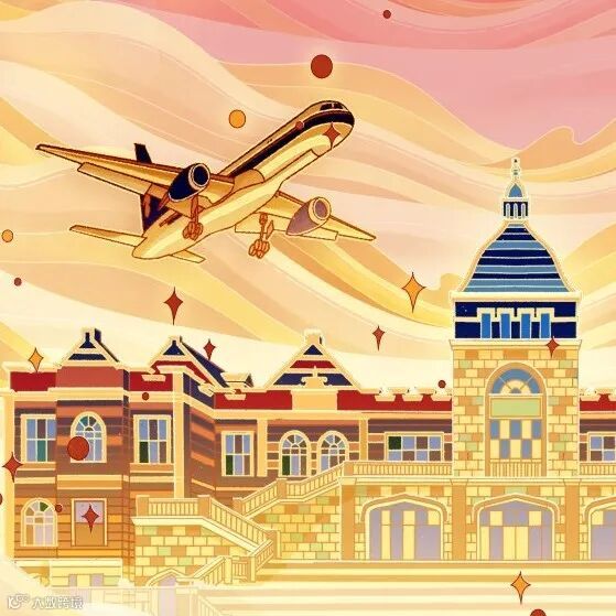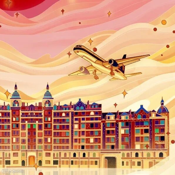 代表着飞翔的金色航班绕着祥云