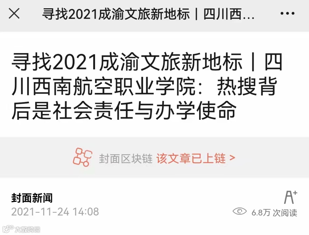 华西都市报在“寻找2021成渝文旅新地标”专栏发表了《四川西南航空职业学院:热搜背后是社会责任与办学使命》的新闻报道,详细解读了西航背后蕴含的厚重价值与深刻理念