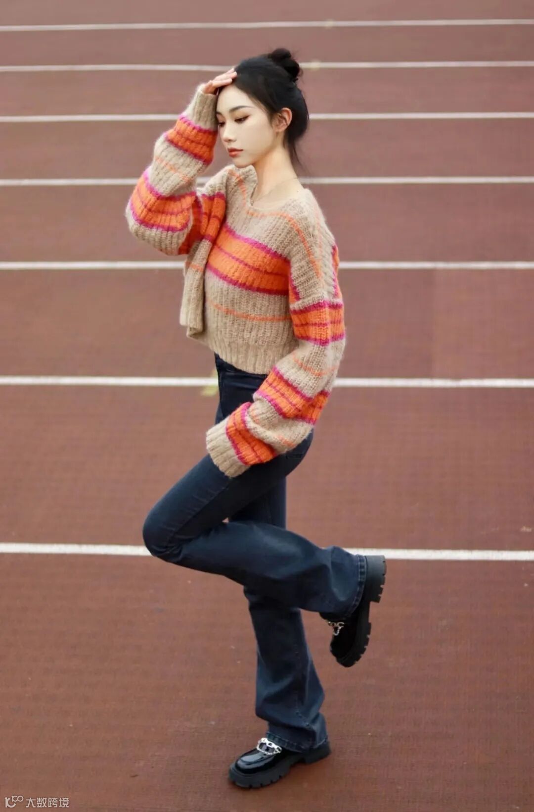 红棕系条纹短款毛衣