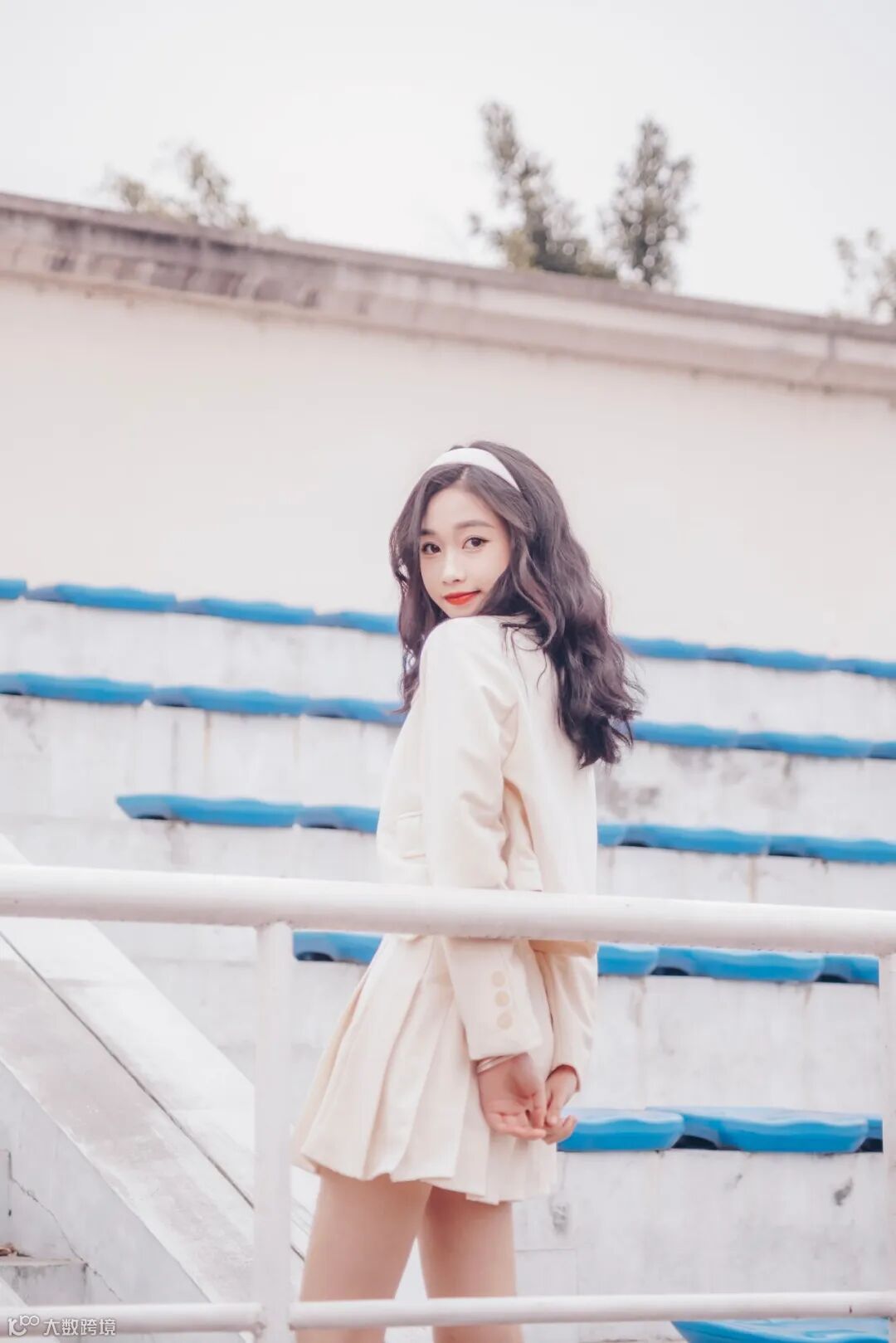 波浪卷发、卡其色发箍