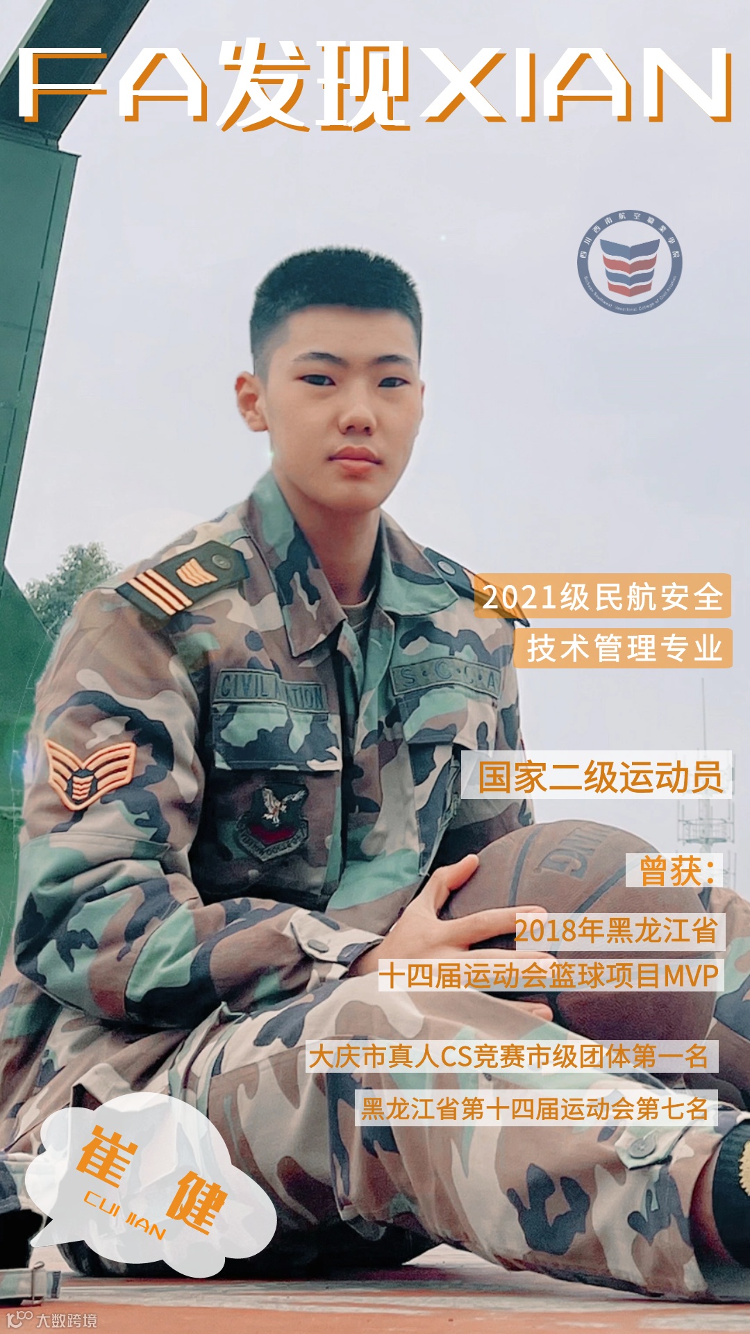 报考民航安全技术管理专业缘自从小对蓝天的向往。崔健在一次偶然的机会了解到西航学子的专业风采,瞬间被吸引了目光,萌生了浓厚的兴趣。在深入了解了西航的专业详情后,练就“火眼金睛”,守护空防安全也就成为了他坚定的目标。