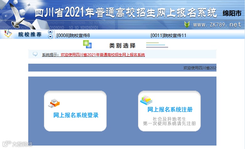 注意:社会考生和异地报名考生第一次使用系统时请点击“网上报名系统注册”进行注册,已注册的社会考生和异地报名考生可直接登录。