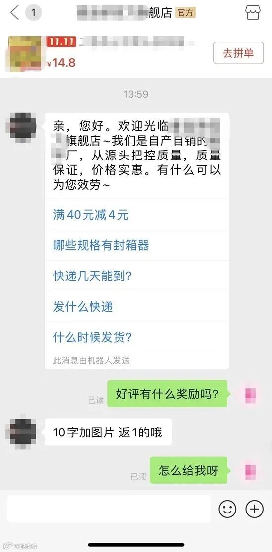 商家快递或外卖内夹带“好评返现卡”