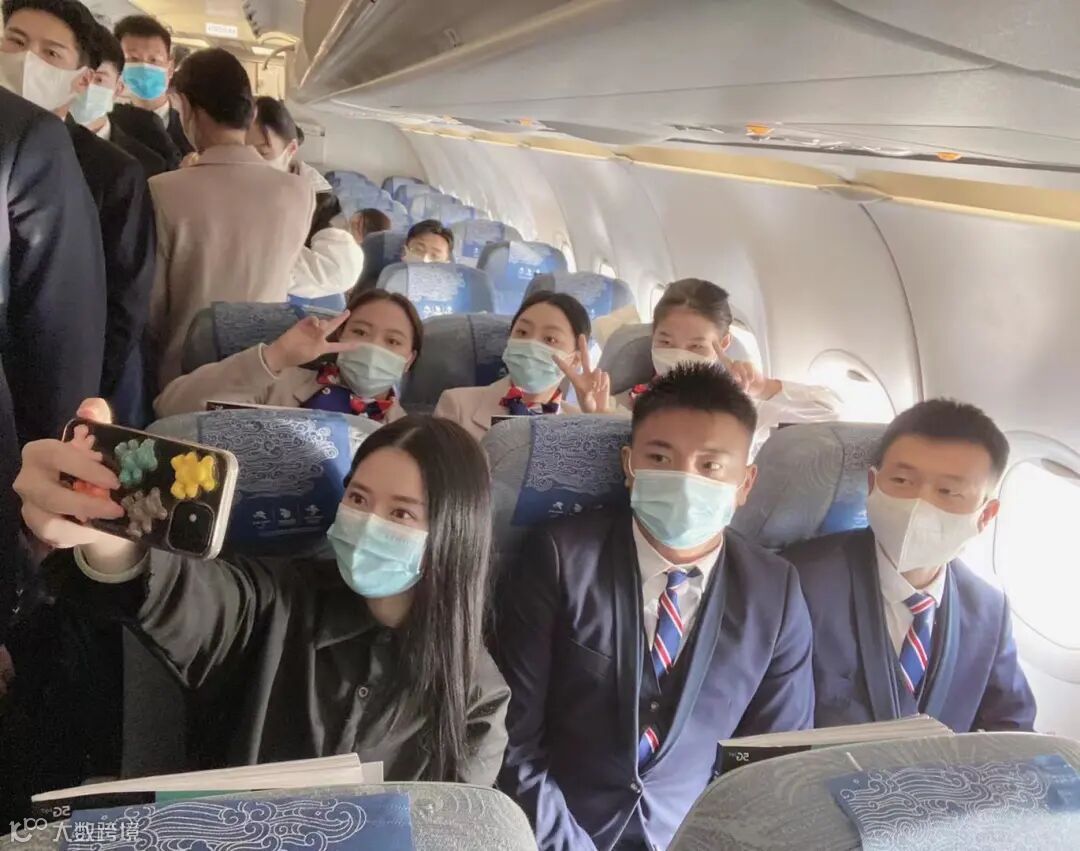 乘上飞往北京的航班,雀跃的心情刻印在西航学子们的脸庞,欢声笑语中透露出由内而外的开心。同学们和老师们纷纷在座位上自拍合影,记录下这珍贵的时刻。