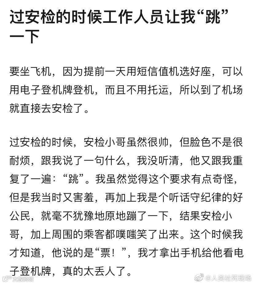 不过,安检的「一视同仁」也总会制造一些尴尬自己、快乐他人的社死场面。更要命的是,仿佛,安检不息,社死不止……