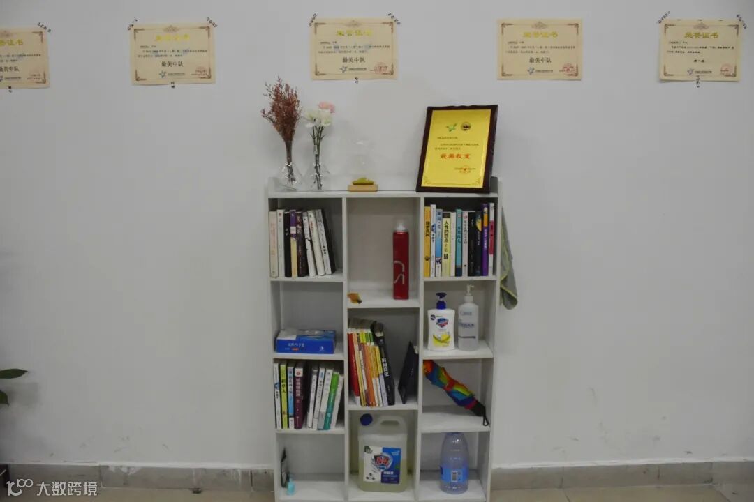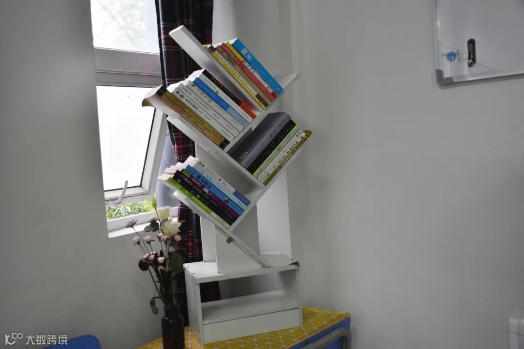 充满设计的书架,摆放整齐的书本,从国内经典文学到国外知名名著,不仅扩展了我们的知识,也为单调的教室增添了一幅美丽的色彩。