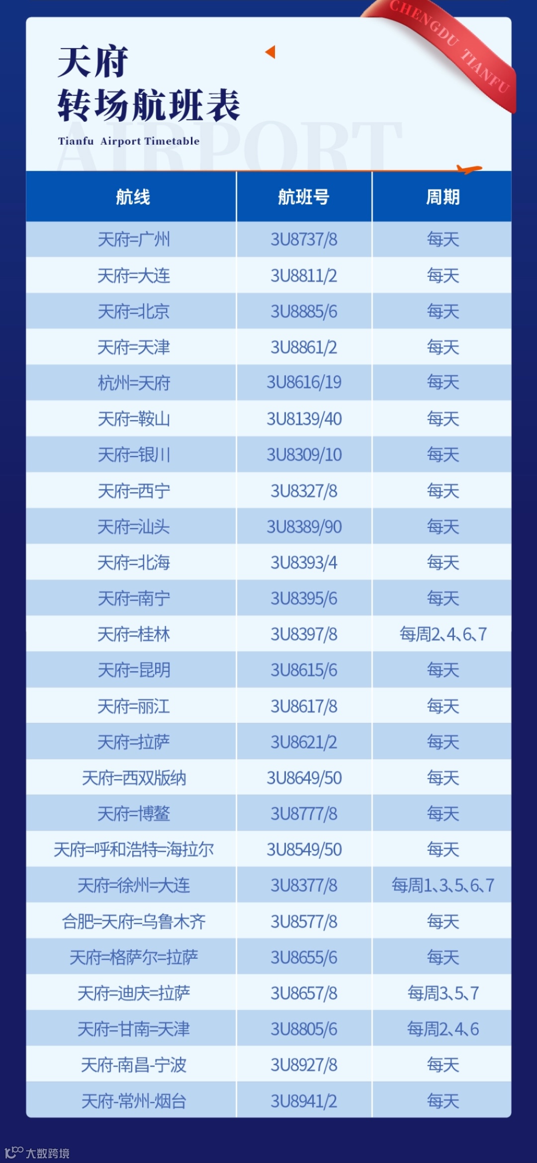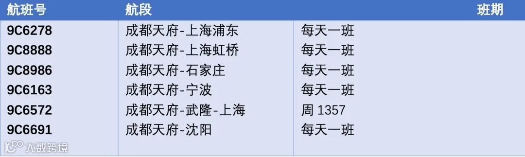 第三阶段为7月14日至10月30日,新增成都天府往返呼和浩特、长春、西昌、昆明、北海、汕头、杭州等航线。