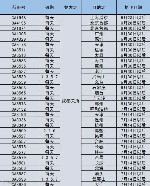 第二阶段为6月30日至7月13日,新增成都天府往返石家庄、天津、武当山、广州、深圳、海口等航线;